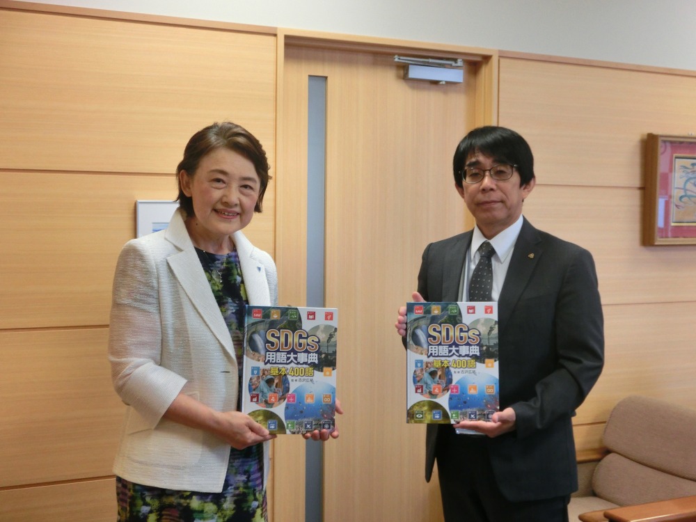 今年は、7月9日(水)に江口副会長が小松市の山本教育長を訪ねて「SDGs用語大事典基本400語」の寄贈を行った。